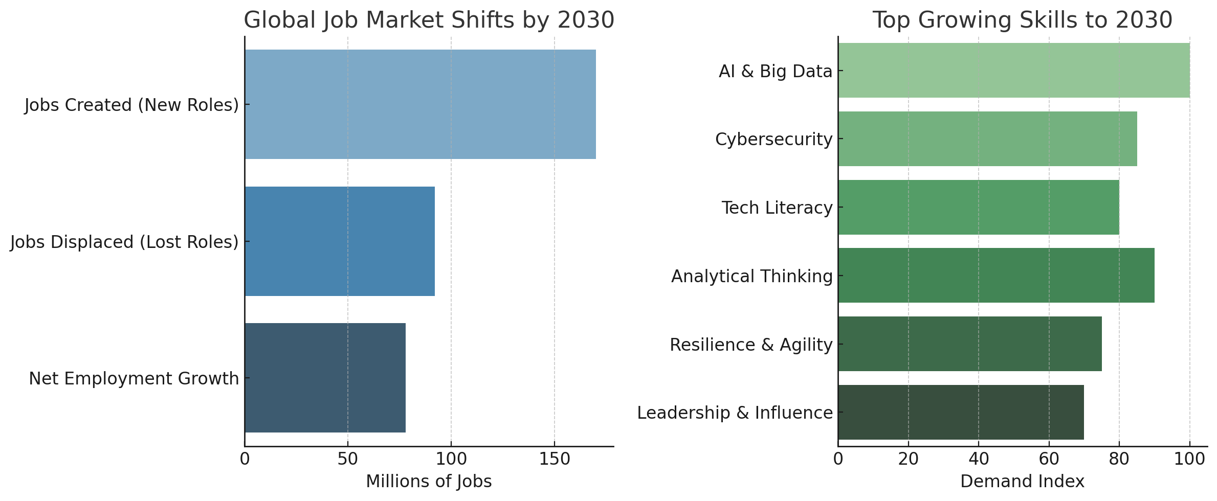 - By 2030, 22% of current jobs are expected to be affected – with 170 million new jobs created and 92 million displaced globally.